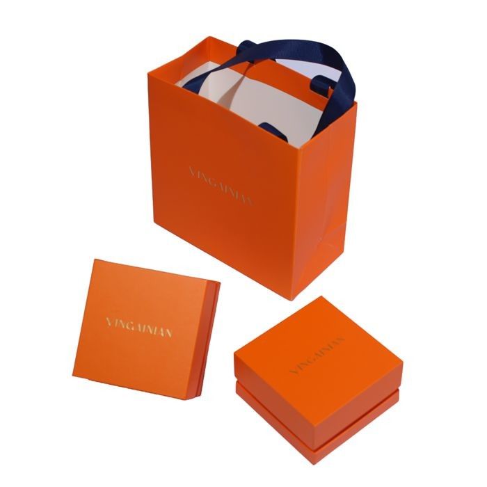 1 Cor e Artesanato: A cor laranja brilhante combinada com o texto estampado a quente cria um contraste nítido, destacando o logotipo da marca, ao mesmo tempo em que apresenta um design simples, mas sofisticado.